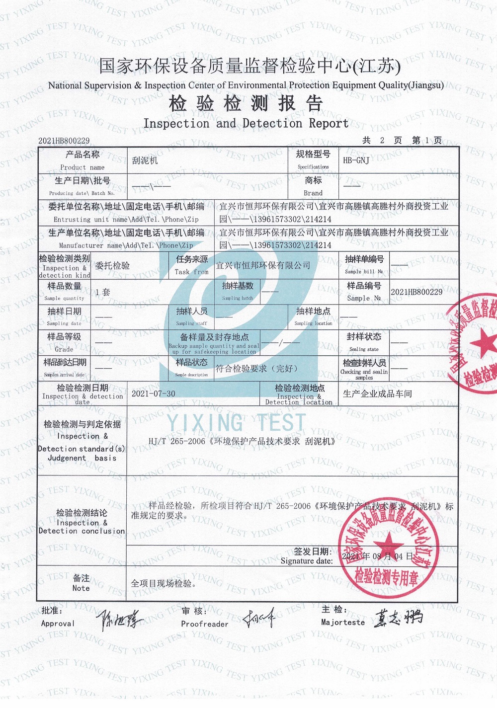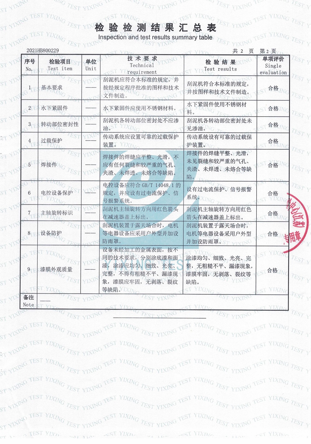 刮泥機(jī)檢測報(bào)告
